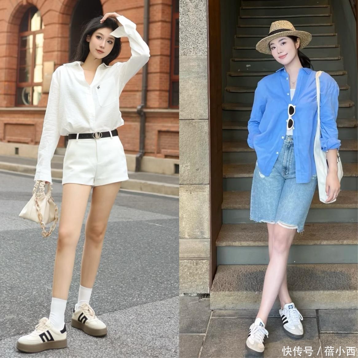 相比于修身短裤,阔腿短裤的优势在于极致的包容性,完美适配各种身材,彻底解决腿部线条不完美的烦恼,穿上不紧绷,能巧妙遮挡胯宽、大腿赘肉、假胯宽这些常见身材短板,对梨形身材、苹果形身材格外友好,再搭配平底德训鞋,也能延伸比例,塑造出满满的街头感。