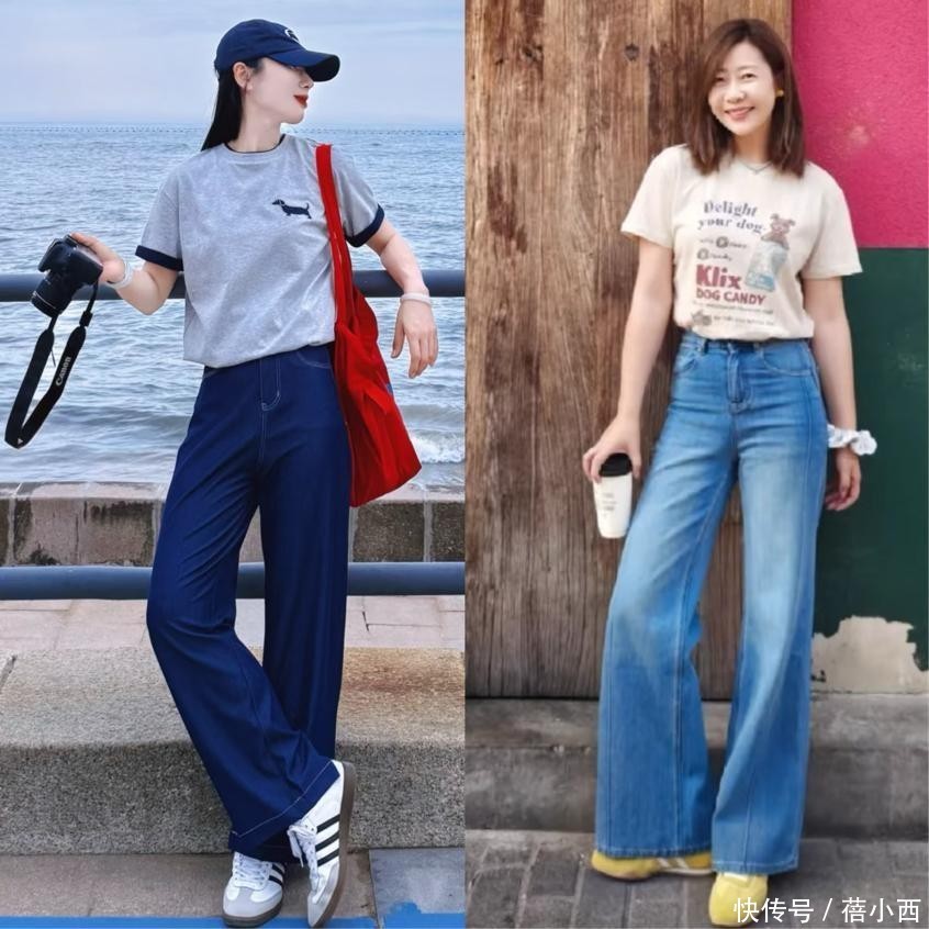 2,t恤搭配阔腿裤和德训鞋